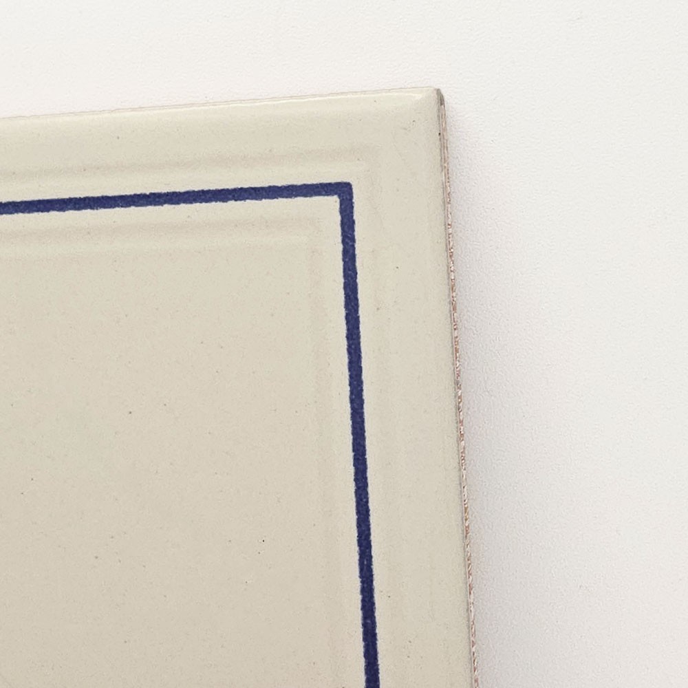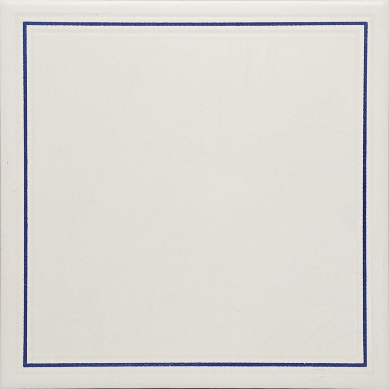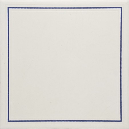 FOND BLANC UNI LISSE MAT, MOTIF CADRE EN TRÈS LÉGER RELIEF AVEC LIGNE BLEUE / EP. 7mm