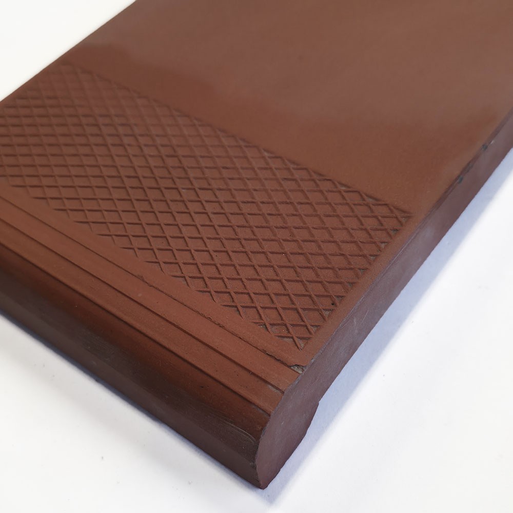 MARCHE PORPHYRE ROUGE BRIQUE UNI LISSE MAT, AVEC PARTIE EN RELIEF QUADRILLÉ / EP. 21mm