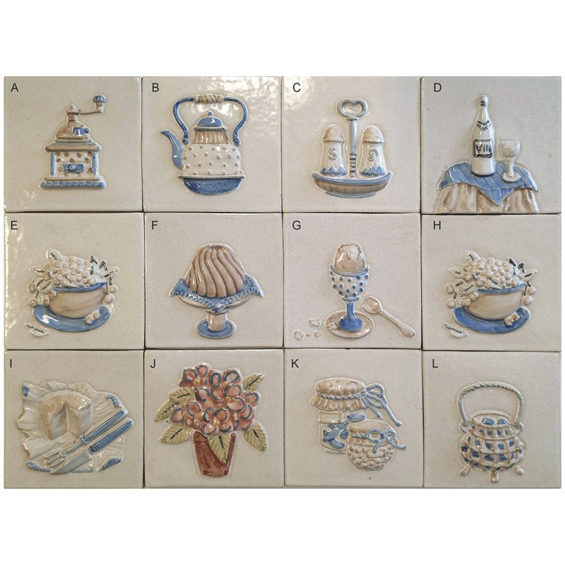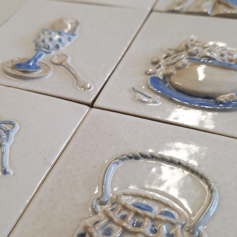 FRESQUE MOTIF COLLINE BLEUE ARBRES EN RELIEF BRILLANT, FOND GRÈS EFFET TERRE CUITE MAT / EP. 8mm Décor artisanal entièrement fait à la main