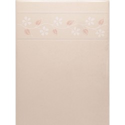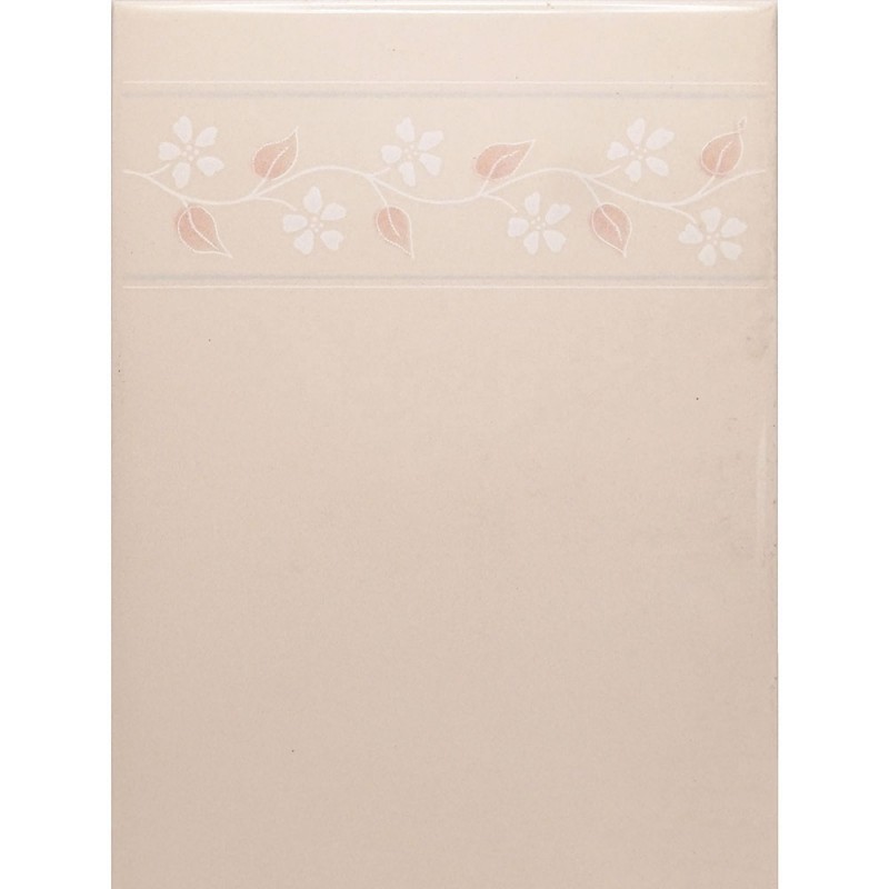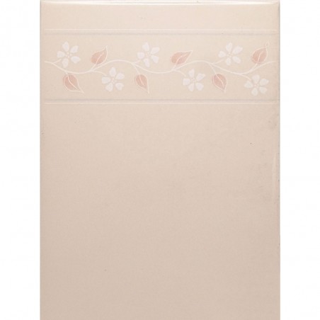 FOND BEIGE ROSÉ UNI, MOTIF FRISE FLEURS BLANCHES AVEC FEUILLAGE ROSE, SATINÉ / EP. 7.5mm