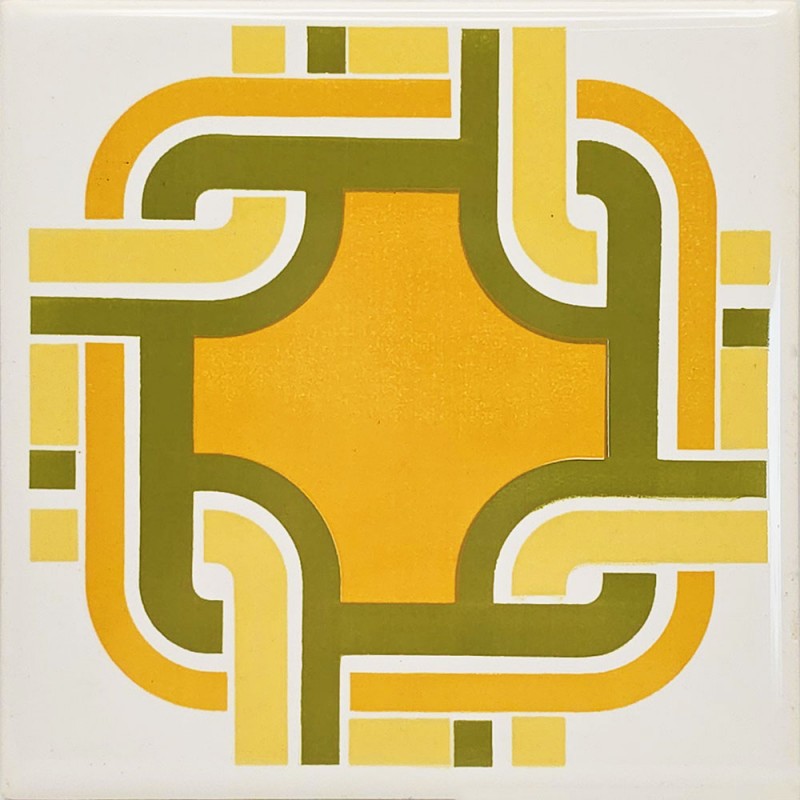FOND BLANC, MOTIF RÉTRO VERT JAUNE ET ORANGE, LISSE, BRILLANT / EP. 5mm