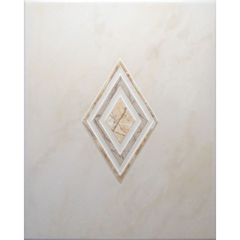 FOND BEIGE CLAIR MARBRÉ, MOTIF CENTRAL LOSANGE EN LÉGER RELIEF / EP. 7,5mm